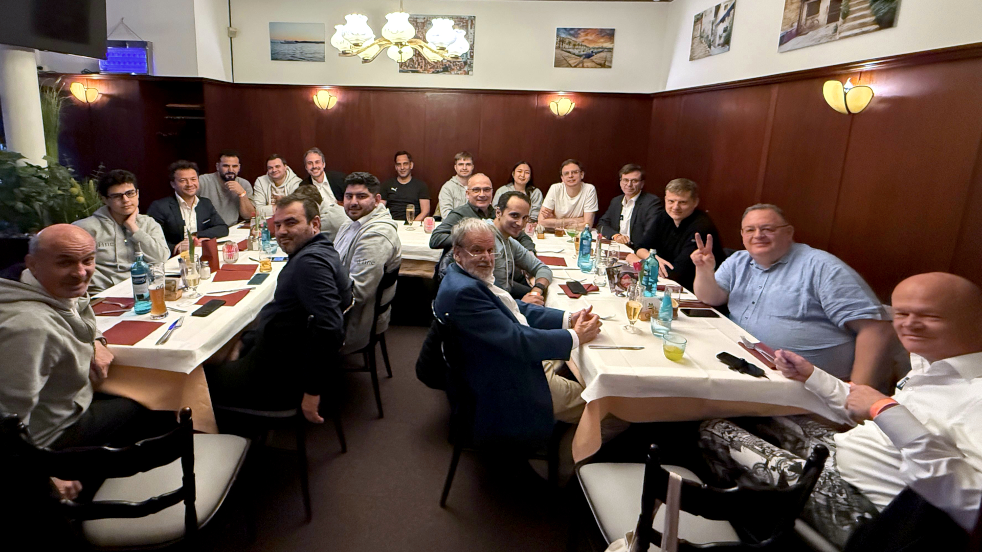Die 25-köpfige Viernheimer Delegation beim gemütlichen Teil nach dem 4,5:3,5 über die OSG Baden-Baden. | Foto: Angelika Valkova/SC Viernheim