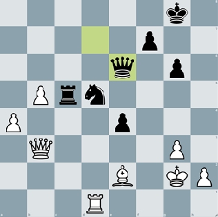 Doch die Baden-Badener hatten ihre Rechnung nicht mit Makan Rafiee gemacht. In einer wilden taktisch komplexen Partie mit Fehlern auf beiden Seiten spielte der Münchener am 8. Brett gegen gegen den 280 Elo-Punkte-Favoriten Vadim Milov folgende hübsche Variante: