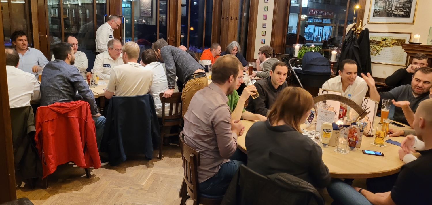 Nach dem Ende der anstrengenden sportlichen Wettkämpfe mit drei Doppelrunden in drei Tagen hatten das gesamte Viernheimer Team am späteren Samstagabend endlich wieder Gelegenheit, sich zu einem gemeinsamen, abschließenden Mannschaftsessen zu treffen. Zur Freude aller Beteiligten begleitete uns die komplette Delegation unseres Sponsors d-fine, der neben der Unterstützung für Viernheim auch die Endrunde in Berlin als Sponsor unterstützt hat.