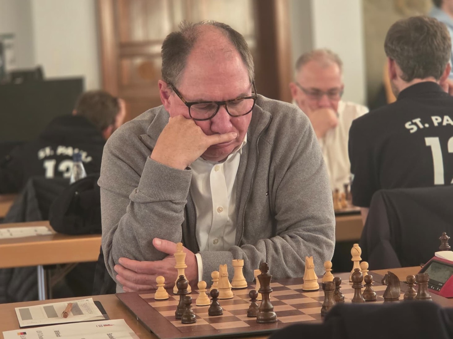 Der Altmeister und ehemalige Nationaltrainer Uwe Bönsch spielte eine überzeugende Angriffspartie gegen Igor Janik. Der Dresdener GM legte damit einen Grundstein für den überraschenden Punktgewinn gegen den FC St. Pauli. | Foto: Anna-Blume Giede